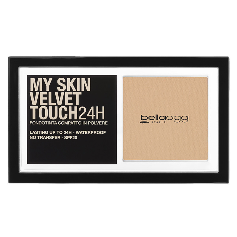 A lightweight compact powder foundation with extraordinary coverage and mattifying properties. The versatile, long-lasting finish is perfect for all skin types, even the oiliest. My Skin Velvet Touch 24H is the new compact foundation that can be applied with a dry sponge to achieve a flawless finish and coverage . An innovative, long-lasting texture . Lightweight and ultra-soft, it gives the complexion a naturally matte perfection with a fine, creamy texture that lets the skin breathe, offering a sensation of comfort from morning to night. Extremely convenient and easy to carry, it provides a matte finish with a natural, even result. The formula is enriched with Camellia Extract and Hyaluronic Acid for hydrating and plumping action. It also contains Corn Starch with sebum-absorbing properties, making it ideal for all skin types, even the most oily. Waterproof and Long-Lasting 24-Hour Tested and Transfer-Free. The SPF 20 sunscreen makes it the perfect product for the city! A unique product for being beautiful and protected for up to 24 hours.