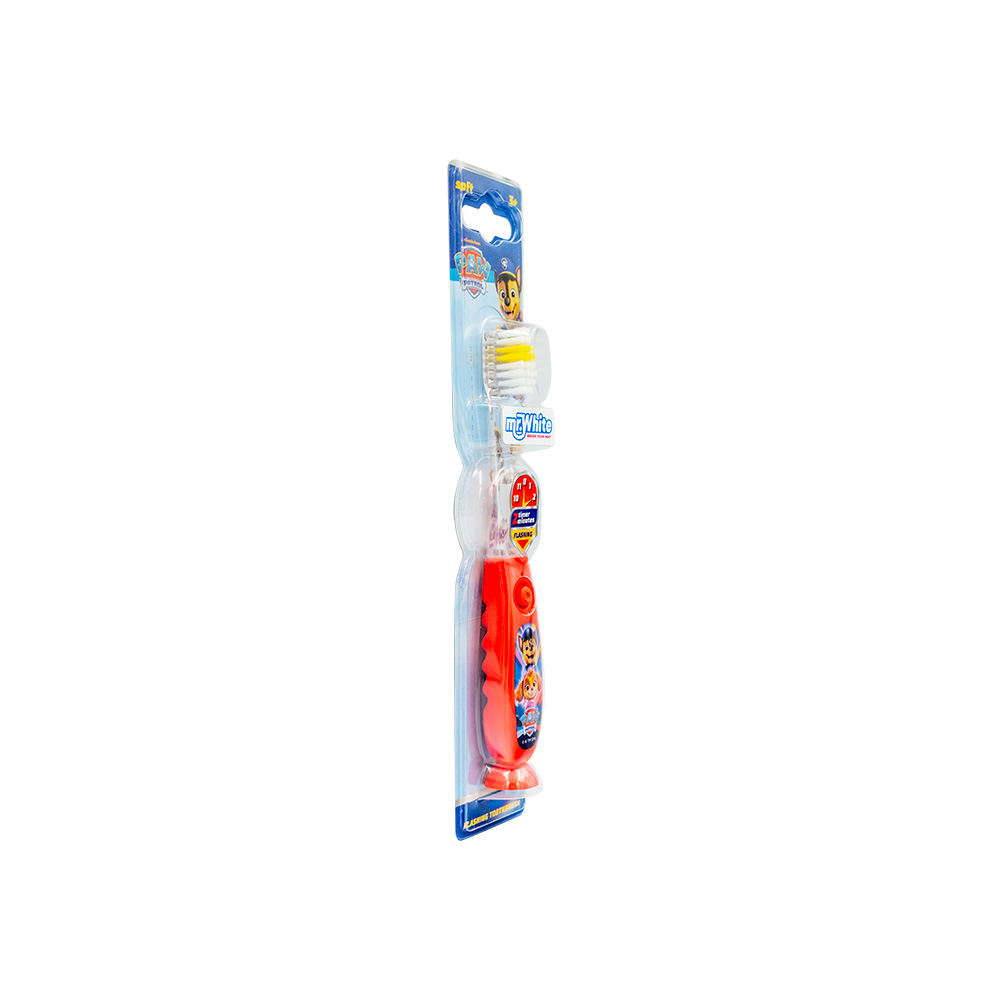 Make brushing exciting with the Mr.White Paw Patrol Flashing Toothbrush. Featuring bright Paw Patrol designs and a fun light-up effect, this toothbrush keeps children engaged throughout their brushing routine. The soft bristles clean gently yet thoroughly, protecting young gums and teeth. Its kid-friendly handle offers a secure grip for better control, encouraging independence. A great way to promote consistent brushing habits while adding fun to your child?s daily dental care.