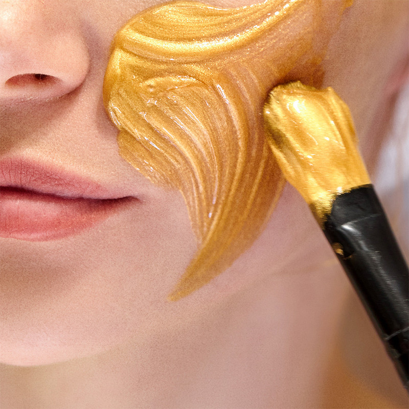 Luxurious golden mask with Ascorbosilane SP that promotes collagen production, lifts, and firms skin for a glowing finish.